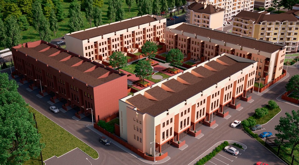 В его состав входят сблокированные офисные строения с индивидуальной придомовой территорией.